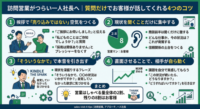 - 訪問営業がつらい一人社長へ|質問だけでお客様が話してくれる4つのコツ - 2026年4月12日